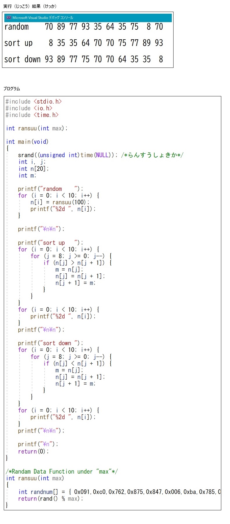 【実行結果(じっこうけっか)、プログラム】